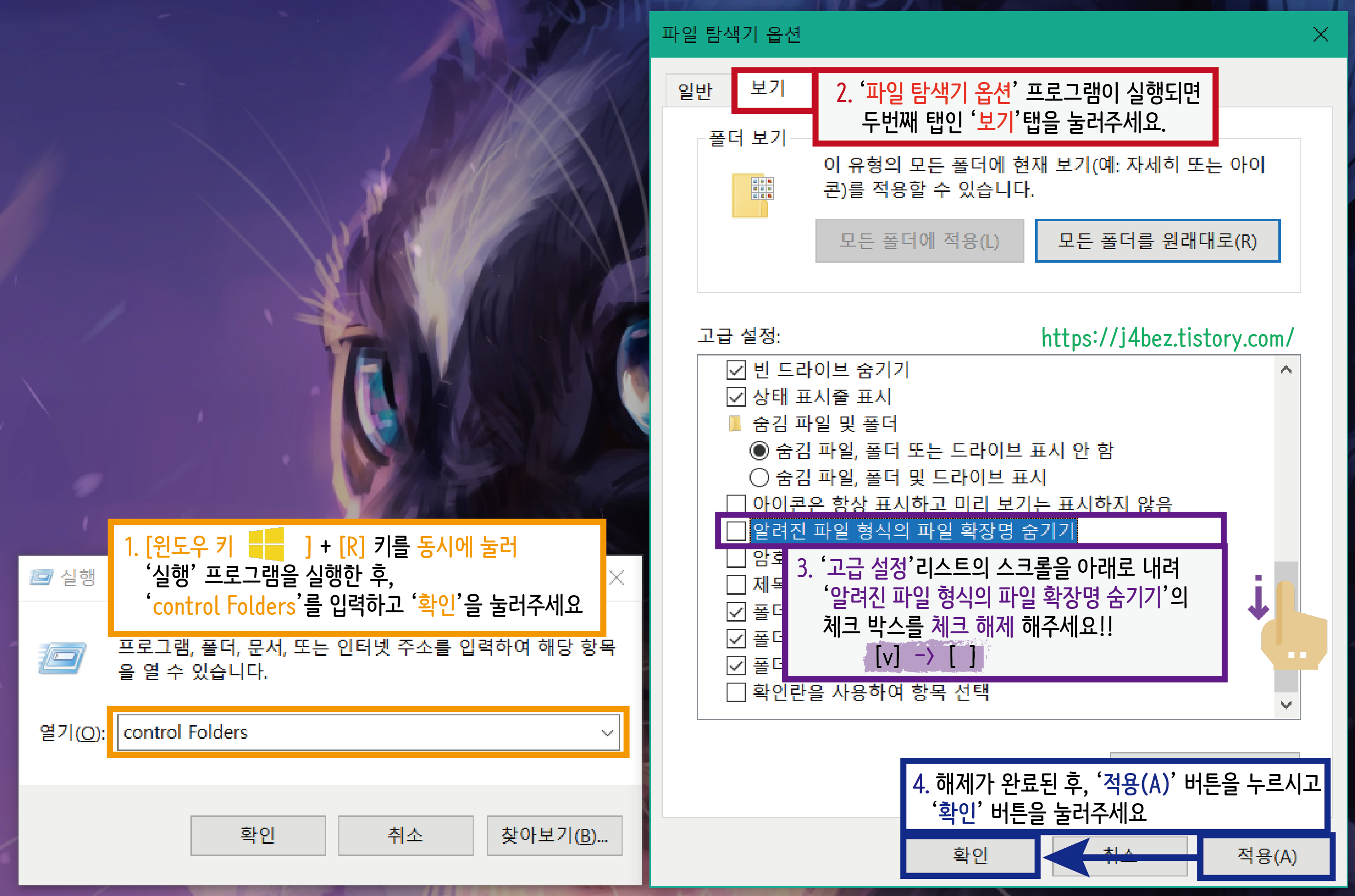 이 방법의 적용 이후엔 원활한 파일 확장자의 확인과 수정을 하실 수 있으실 거예요.