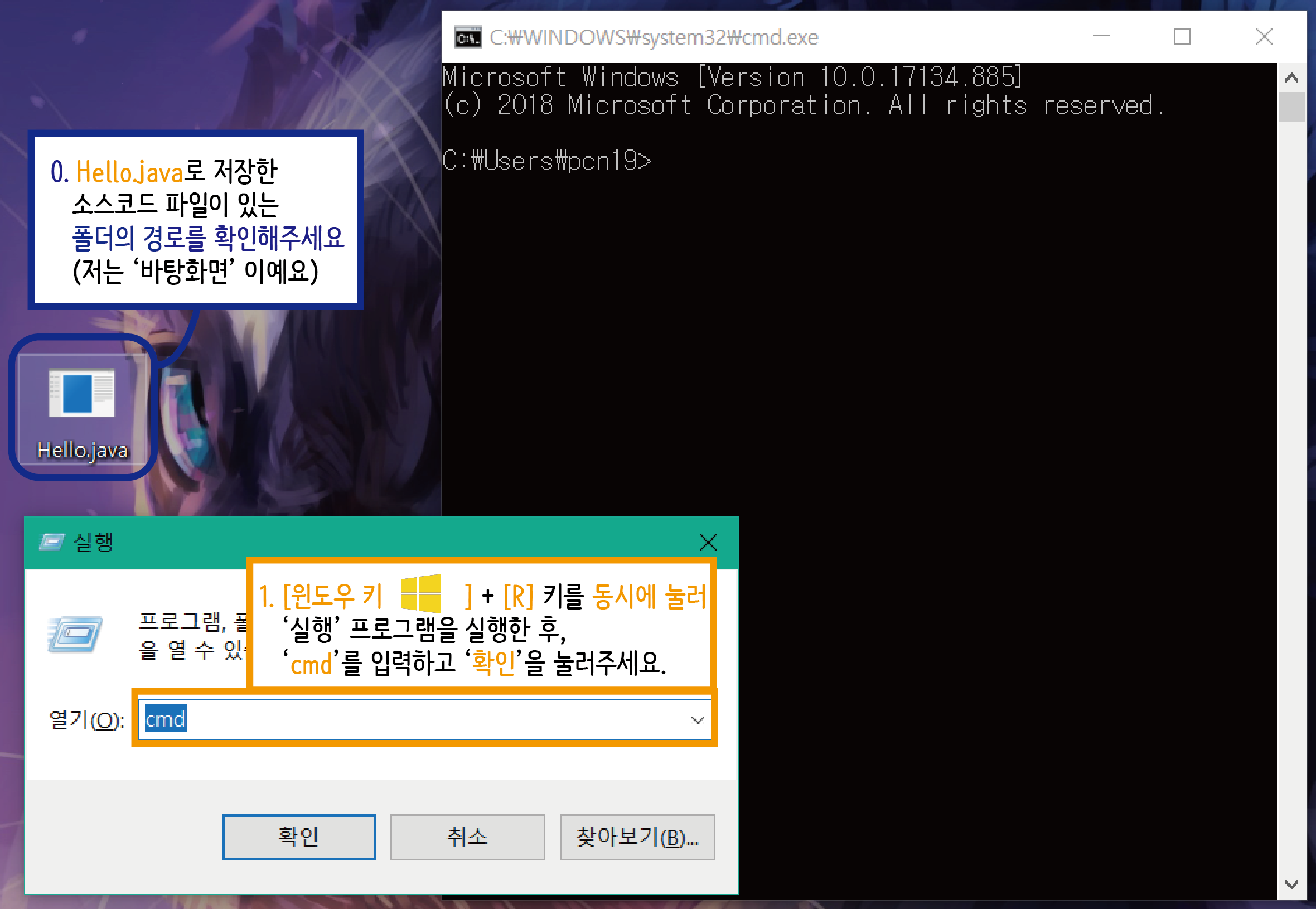 >1. 명령 프롬프트 창을 소환하세요.