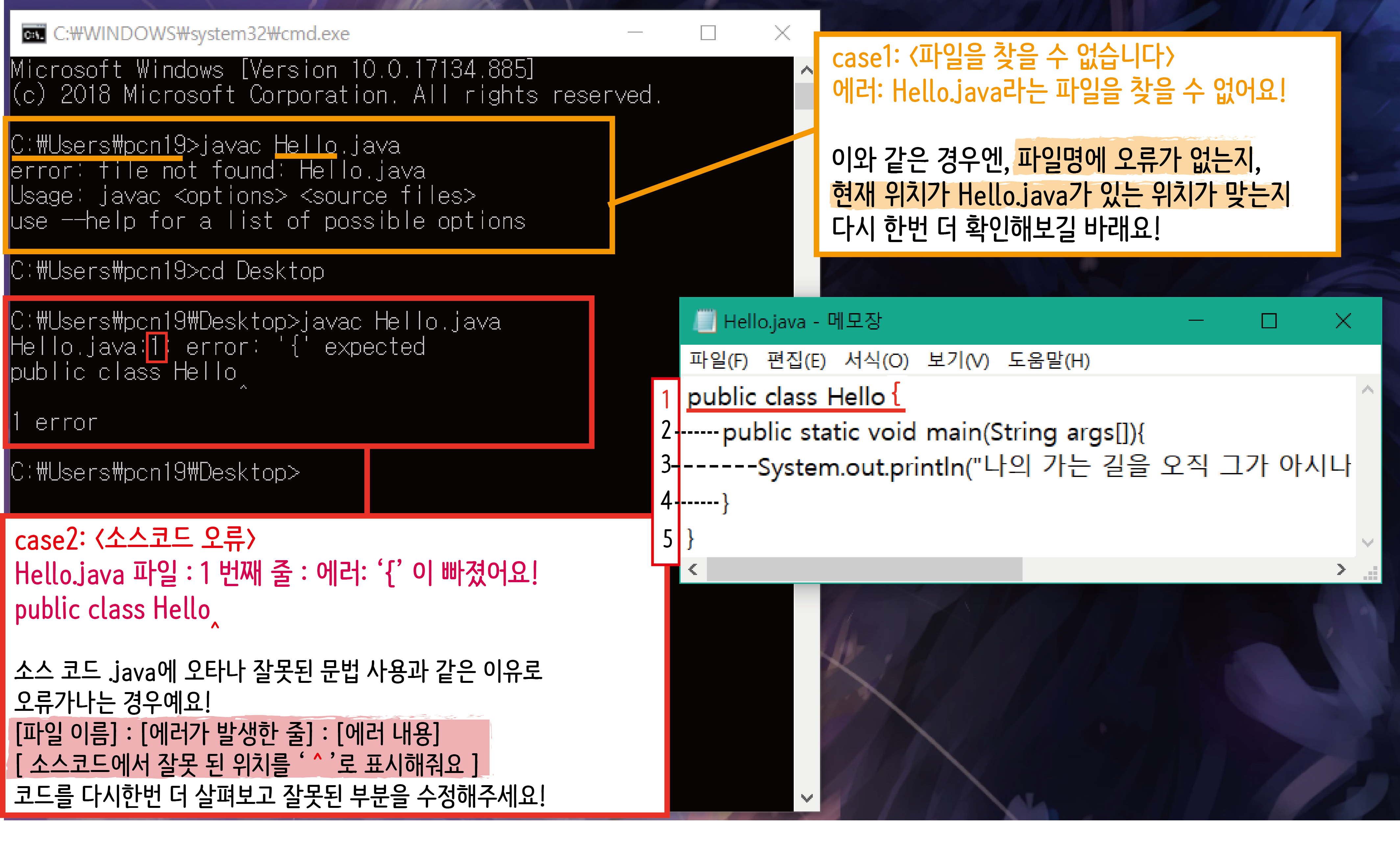 이 과정을 메모장과 명령 프롬프트 를 통해 한 과정, 한 과정씩 직접 해보는 시간을 가졌는데요