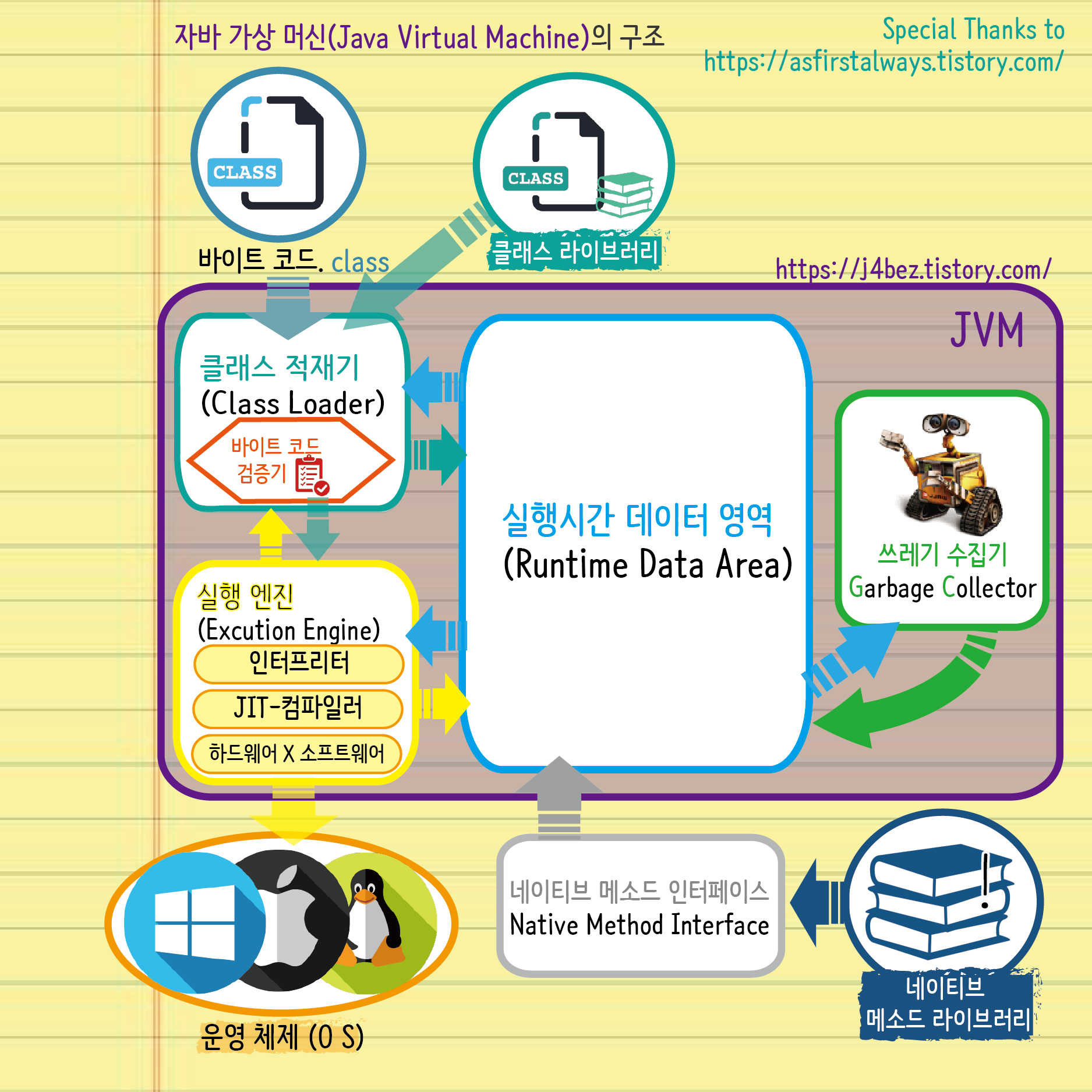 뿐만 아니라 JVM은 효율적인 메모리 관리(Garbage Collection)도 수행해주는 기특한 친구라는 것을 기억해줘야 해요.