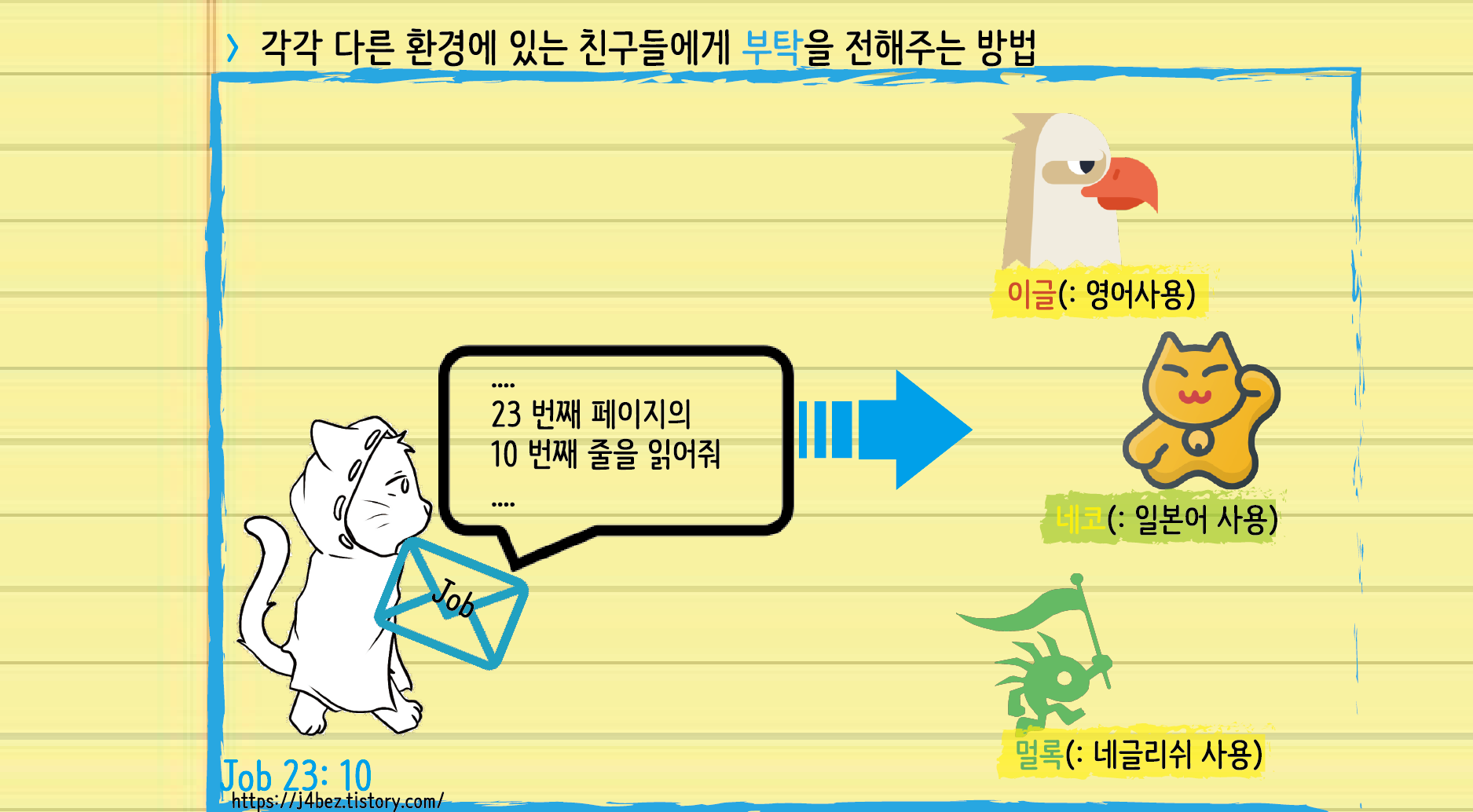 다음과 같은 부탁을 각각 다른 환경에 있는 친구들에게 전달한다고 가정해봅시다.📬