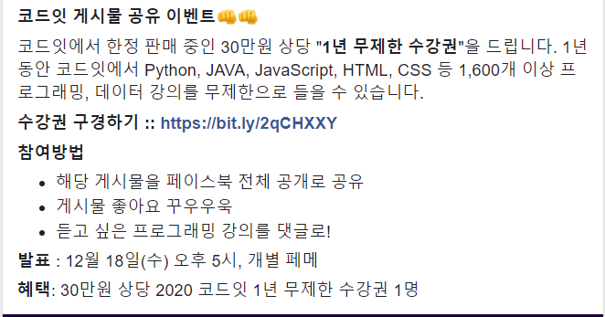 '코드 잇 1년 무제한 수강권[프리패스]' 이벤트에 당첨되게 되었어요!!